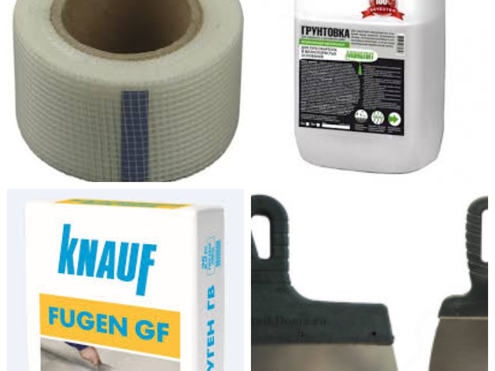 След времето за сушене, пригответе хоросан от специална замазка за подсилване на шевовете. И вие също ще се нуждаете от подсилваща лента - серпянка, подсилена хартия. Върху шева се нанася тънък слой мастика (трябва да бъде добре „потъпкан“ в шева). Върху суровата смес се нанася лента. Центърът на лентата трябва да съответства на шева. Краищата на лентата се притискат и заглаждат. За да се избегнат въздушни мехурчета, отгоре се разнася със средна шпатула. Излишният разтвор ще бъде отстранен и лентата донякъде ще се "удави" в шпакловката. След кратко изсъхване върху шева се нанася още един слой шпакловка и се изравнява добре. И също така с това решение всички места за закрепване на гипсокартон са затворени.