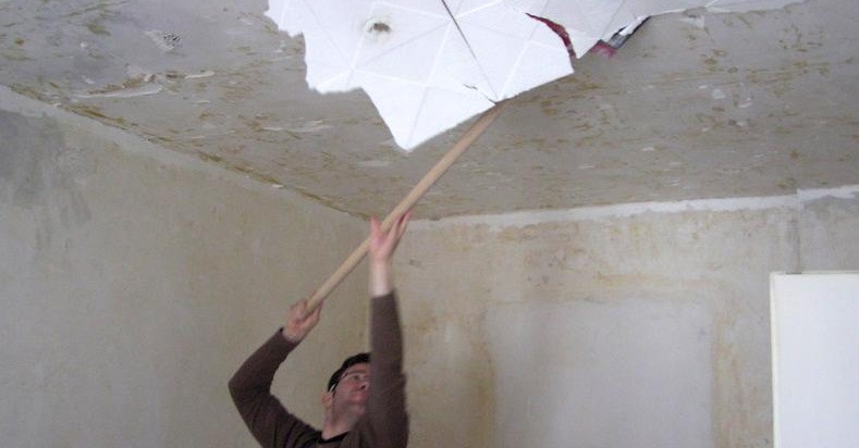 Преди да започнете работа, е необходимо да извършите подготвителна работа. От стаята се изнасят мебели, които могат да попречат на работния процес. Освен това стените и таванът се почистват от тапети, боя и други довършителни материали. Прахта и паяжините трябва да се изметат от стените.