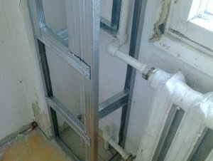 За да направите издръжлива гипсокартонена кутия за тръби, първо трябва да фиксирате водещия профил към пода и стените, след което елементите на стелажа на конструкцията се вмъкват в него. Тук принципът е прост, колкото повече опори има, толкова по-здрава е конструкцията.
