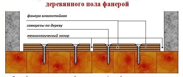 - Монтаж на дневника. В тяхното качество тук са ленти от шперплат с дебелина до 5 см. Закрепването се извършва с помощта на лепило или самонарезни винтове. Когато се образуват празнини между стария под и лаговете, те се запечатват с парчета шперплат или дърво.