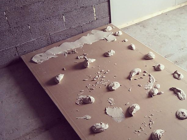 - Притискайки го плътно към повърхността и силно натискайки монтажния нож, горният слой от картон се изрязва с гипсовия състав.