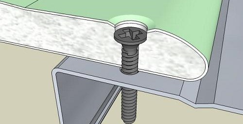 Но задачата не е толкова трудна, тъй като закрепването се извършва с помощта на винтове с конични капачки и фини резби. Това им позволява лесно да потънат от 2 до 3 мм в структурата на листа, без да създават неравности по равнината. Размерът им се избира в зависимост от дебелината на листа, обикновено е достатъчно 4-3 см.