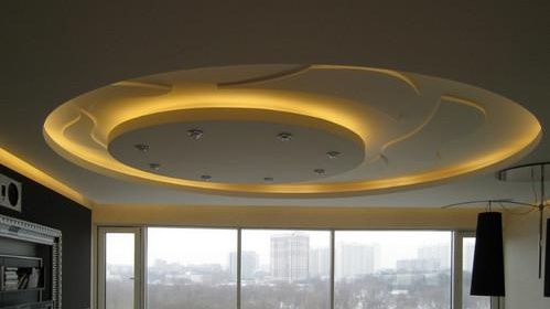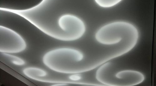 Осветление на многостепенни таванни конструкции. Лентата може да се постави между нивата на тавана и по очертанията на фигурите.