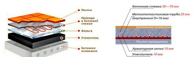Като се има предвид инсталирането на електрически под под плоча, базирана на отоплителен кабел, се взема класически пример за изграждане на такава отоплителна система, като се използват всички слоеве и технологията на тяхното изграждане.