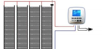 Принципът му на действие е, че напрежението се прилага към излъчвателите чрез медни проводници. Контактите в същото време не могат да изгорят поради наличието на сребърно покритие. За да се свържете към мрежата, просто използвайте термостатите, които са част от системата.