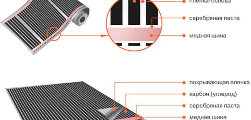 Основата на системата е карбонова паста, която е запечатана вътре в полиестерно фолио. Понякога можете да намерите име като подово отопление на въглища, който се получава от компонентите.