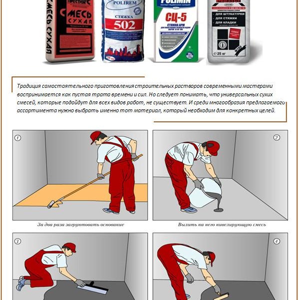 Въз основа на всичко това някои видове сухи смеси се отличават с висококачествено изравняване на почвената основа.