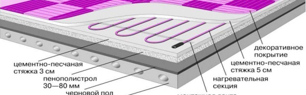 При извършване електрическо подово отопление дебелината на замазката трябва да се спазва според конкретните условия на изпълнение и параметрите на детайла.