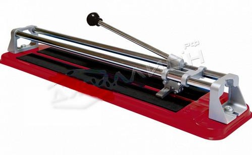 С продажна цена от около 3000 рубли ще ви бъде предложен инструмент с дължина на рязане 600 mm с дебелина на керамичната плочка 12 mm.С относително малки размери от 850 x 200 x 140 mm и тегло от 5,75 kg, това моделът е изработен по надеждна двурелсова схема върху солидна метална основа. Производителят не спести от материала при производството на подсилени скоби, а също така използва никелирани стоманени тръби с малко по-голям диаметър под водачите, отколкото в подобни модели.