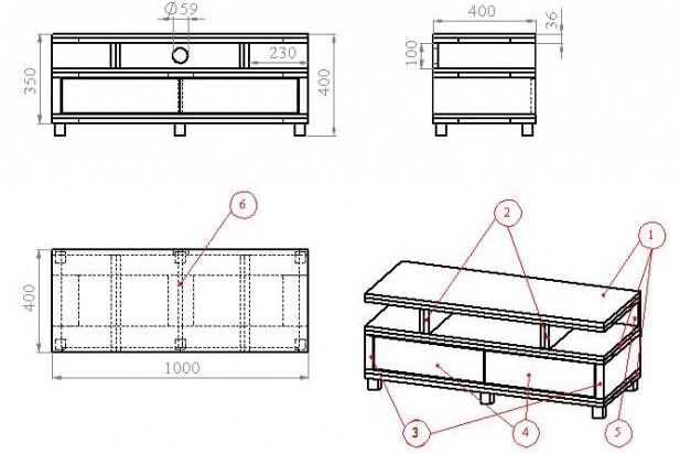 Предимството на използването на ламинирана ПДЧ е, че можете да спестите време, когато правите нощно шкафче за аквариум със собствените си ръце или за телевизор, тъй като не е необходимо да обработвате и шлайфате повърхността.И така, направете сами чертежи на стойка за телевизор и нейните отделни части са готови. Сега можете да продължите към директното производство на заготовки. При нанасяне на размерите върху материала е необходимо да се спазват точните размери.