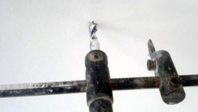 - Най-лесният начин е да пробиете дупки със свредло, върху което е монтирана корона с диаметър, равен на диаметъра на кръга, начертан на тавана.