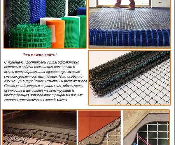 - С армираща мрежа. Много е популярен сред изпълнителите. Мрежовите клетки обикновено се вземат от 40 до 50 mm. Полагането не се извършва върху самата основа, а върху открити опори, които могат да бъдат дървени блокове. В допълнение към положителните характеристики, можете да се сблъскате и с недостатъците на използването на такъв материал за укрепване на бетонната замазка. По време на свиване могат да останат пукнатини, въпреки наличието на мрежа. С течение на времето използвания метал започва да се окислява, корозира и се разпада. Следователно производителността е намалена.