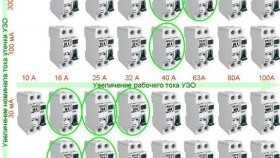 - Според номиналния работен ток. Стойността на номиналните (работни) токове за RCD е същата като за прекъсвачите, тя е 16, 25, 32, 40, 63, 80 A.