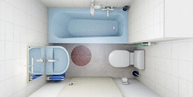 - Балансът на първите две - в банята можете удобно поставете душ, мивка и тоалетна. След това пералната машина ще трябва да бъде построена на друго място. Добър съвет, как най-добре да инсталирате пералня в малка стая.