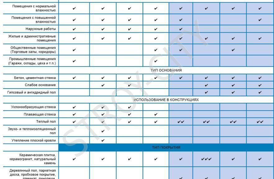 Технически саморазливен под използва се за полагане на груба мазилка под пода от определен материал. Не може да се използва като покривно покритие поради ниските си якостни характеристики. Но като основен слой, той напълно изпълнява всички възложени функции и задачи. Дебелината на основния слой може да варира от 10 до 80 mm.