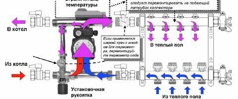 За да не се притеснявате за всичко необходимо за колекторната група, по-добре е да намерите готова версия на строителния пазар, която ще включва всичко необходимо за нейната пълна работа. Всяка схема на ръчно полагане на воден под изисква отделна връзка към колектора. Това трябва да се има предвид, за което се извършва предварителният проект на системата.