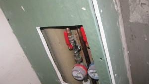 От остатъците от профила около тръбата е направена рамка и е предвиден ревизионен люк. Покрийте получената структура с парчета от останалия гипсокартон.