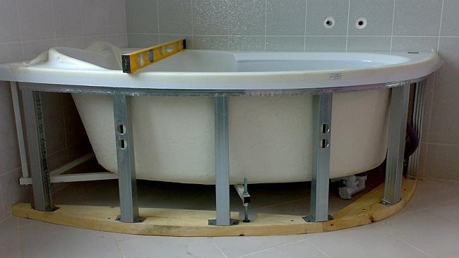 Ако ваната вече е монтирана, тогава от профила се монтира рамка по периметъра на ваната.