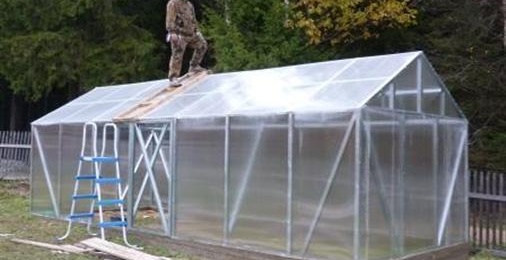 Отгоре оранжерията е покрита с пластмасова обвивка или поликарбонатни листове.