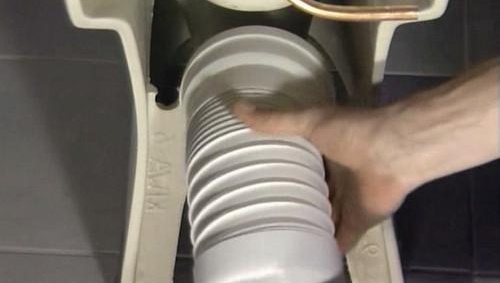 В допълнение, свързването на водопроводна инсталация към канализацията се извършва с помощта на гумени маншети. За да бъде връзката надеждна и плътна, е необходимо да почистите старателно гнездото от стар цимент. Ако тоалетната трябва да се премести спрямо канализацията, най-добре е да изберете гофрирана тръба.