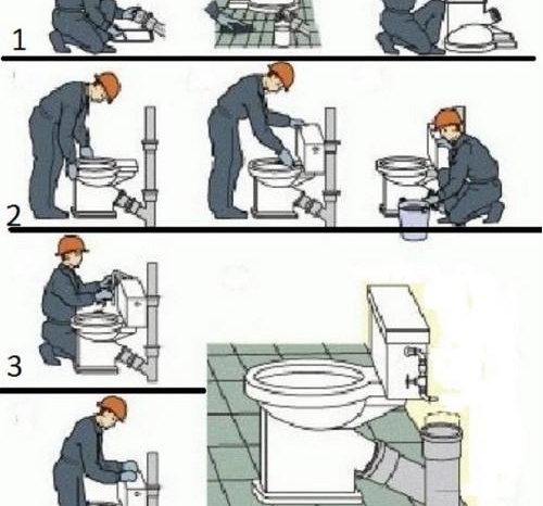 Преди да стартирате тоалетната чиния в изхода на канализацията, изходът се смазва със смес, състояща се от изсушаващо масло и червено олово. След това около него се увива нишка от смола, така че краят му да остане свободен.Изходът се смазва отново с червено олово. Остава само да инсталирате тоалетната и да я фиксирате на място.
