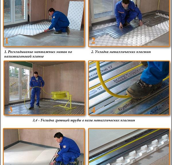 Освен това имат специфична основа с релеф, в която идеално пасва тръбопровод с диаметър до 18 мм. В този случай не е необходимо допълнително закрепване. Процес на сглобяване подът с топла вода не отнема много време и става по-прост и удобен.