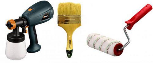 - Четки, валяци или пръскачка. Тези инструменти са необходими за нанасяне на грунд върху повърхността на гипсокартон.