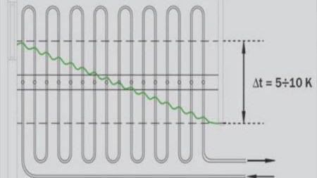 "Змия" е подходяща за помещения, които губят по-малко температура. В същото време се обръща внимание на факта, че по-топлият воден поток се насочва към зони, които ще бъдат по-студени, като например външните стени.