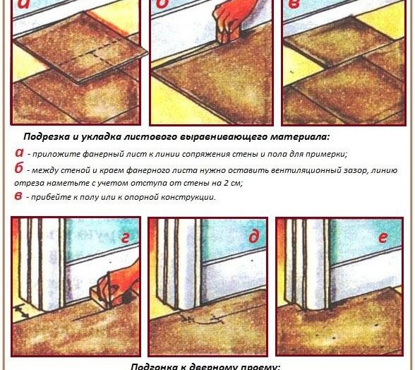 Полагането на шперплат на пода може да бъде различно. Ако това е дървен цокъл, тогава най-често е достатъчно да завиете листове материал върху стария цокъл.