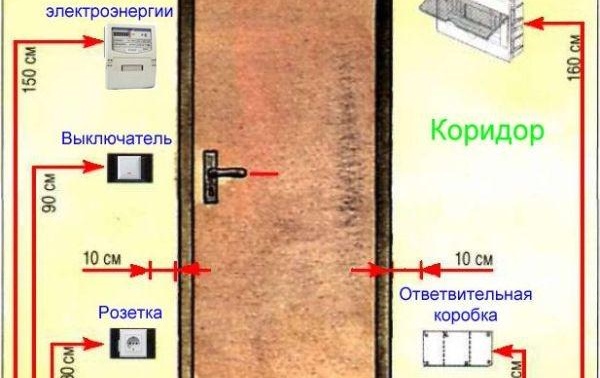 А удобството на контактите и ключовете, монтирани на входа на стаята, не трябва да бъде по-високо от нивото на спуснатата ръка на средностатистически възрастен потребител. И това е пряко установен стандарт за разстоянието на контактите и ключовете на самия вход на стаята. Това е необходимо, за да можете бързо да намерите устройството, дори и на тъмно.