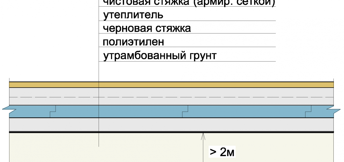 Първият слой се прави върху груба основа. Той служи повече за създаване на равна повърхност за последващо полагане на материали. По принцип този слой е подходящ за всички повърхности, които имат дори незначителни ефекти. Вместо изолационен слой може да се използва подова плоча или под, подготвен в съответствие с всички правила.